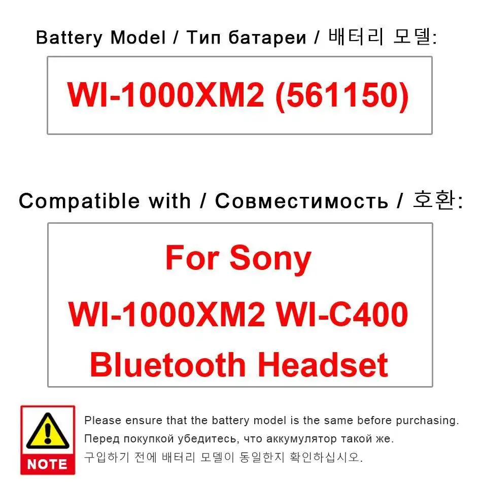 For Sony WI-1000XM2 WI-C400 Bluetooth Headset 561150 Wireless Noise - Cancelling Headphones Battery High Compatibility 290Mah $12.02