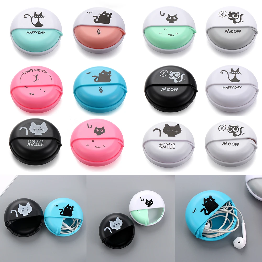 1pcs Headphone Cable Box Round Headphone Storage Box Rotating Cover Earphone Container Home Accessories Cute Data Line Box Case $2.36
