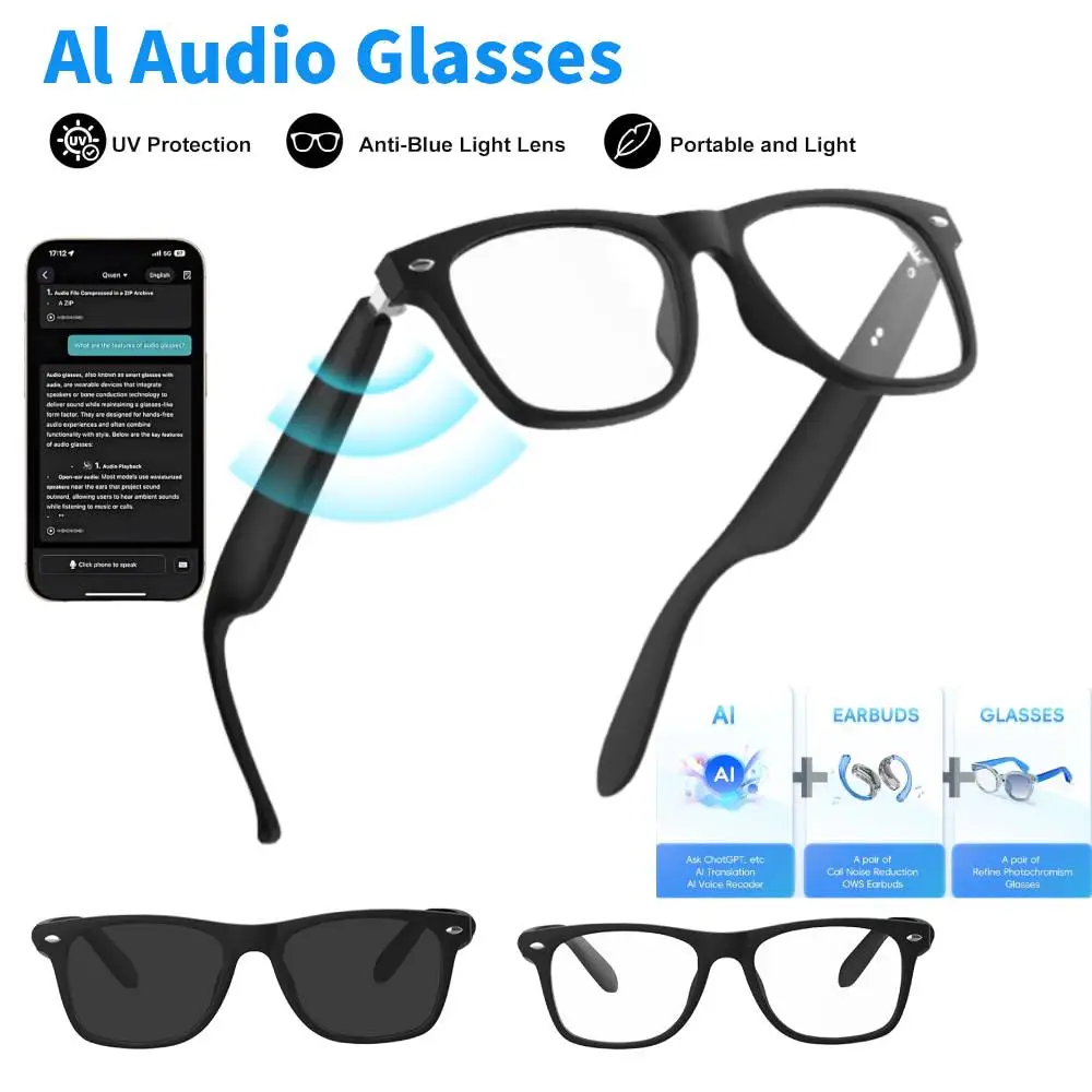 AI Intelligent Translation Glasses Music Headphones Glasses Bluetooth-Compatible Support 130+ Languages for Travel Bussinees $18.59