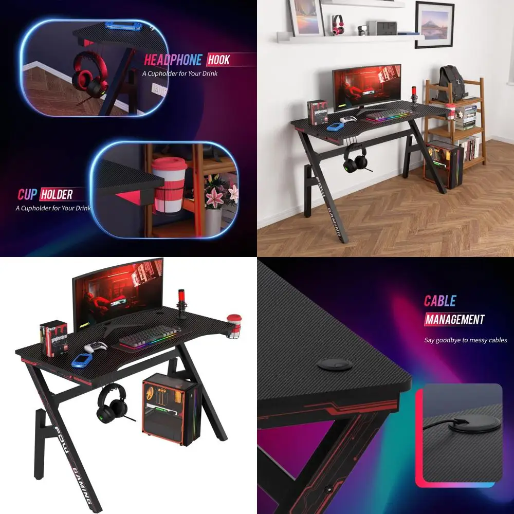Red Carbon Fiber Gaming Desk: 47 Sturdy Steel Frame with Cup Holder, Headphone Hook, Cable Management, and Adjustable Leg Pads f $96.72