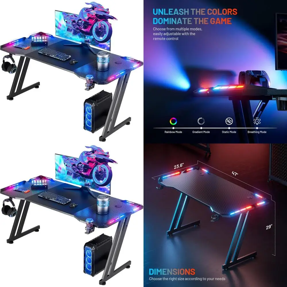 Ergonomic 47 Carbon Fiber Gaming Desk with LED, RGB, Cup Holder, Headphone Hook & Mouse Pad, Black $104.00