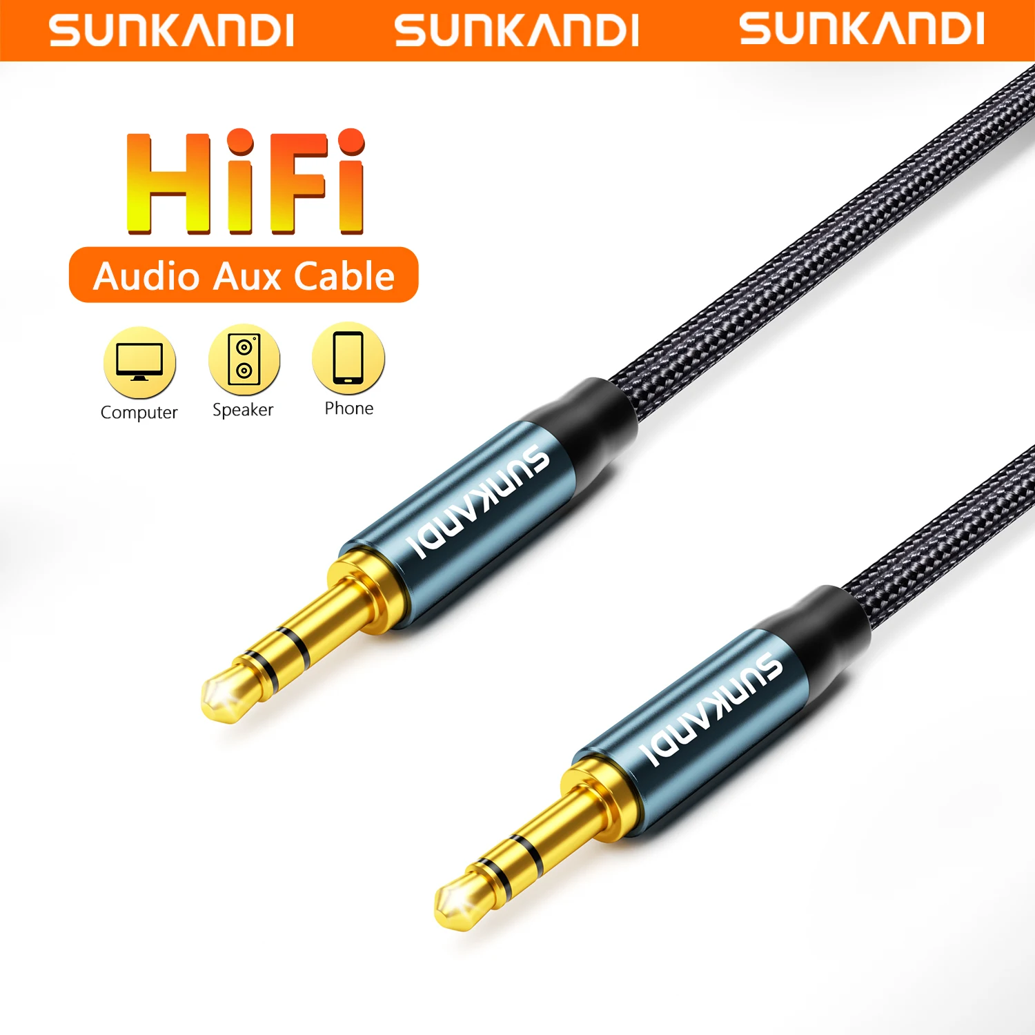 SUNKANDI 3.5mm Audio Cable Male to Male Stereo Audio AUX Cord for Car, Headphone Jack, Speaker, Home Stereos, Smartphone $3.94