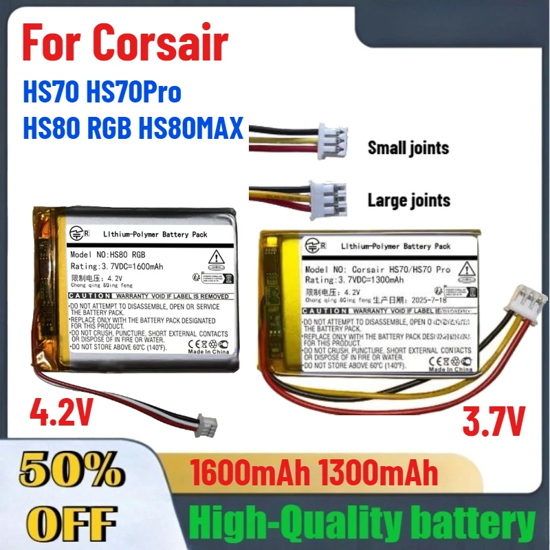 High-Quality 3.7V 1300mAh/4.2V 1600mAh Wireless Headphone Battery for Corsair HS70 HS70Pro HS80 RGB HS80MAX Fast Shipping $19.05