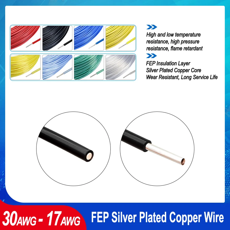 1/2/5/10m Single Core PTFE Wire Silver Plated Copper Cable FEP Insulation 300V 200℃ OFC DIY HiFi Audio Speaker Headphone Line $0.54