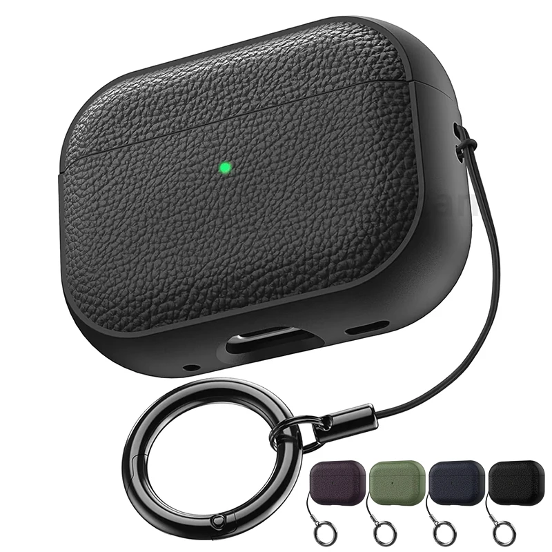 Case For Air Pods 4 3 2 1 Shell PU Leather Grain Case With Keyring Hook Wireless Headphones Accessoris For AirPods Pro 1 2 Cover $4.50