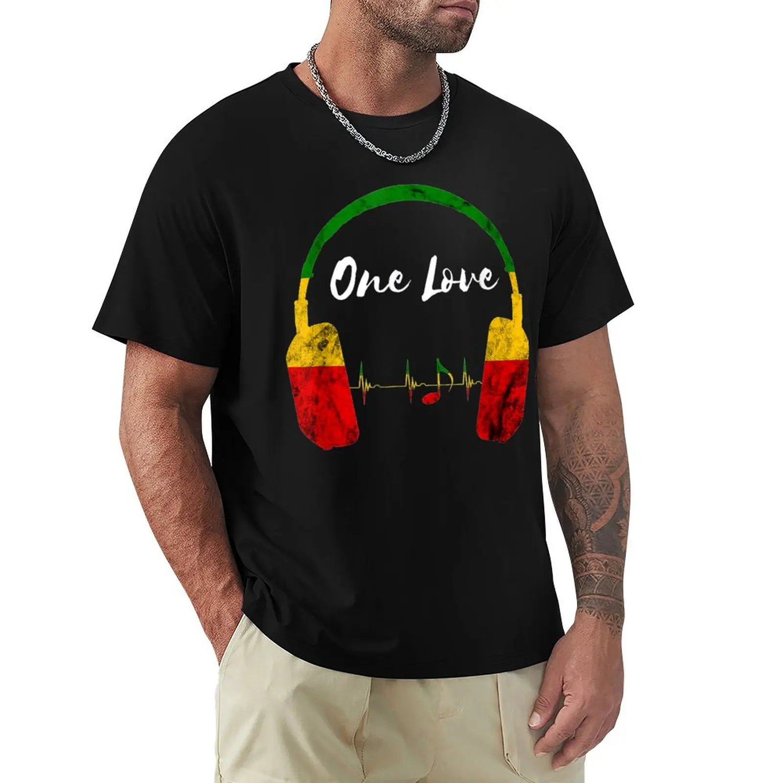 Rasta Reggae Music Headphones Jamaican Pride One Love T-Shirt Urban Style Casual Short Sleeve Top $12.81