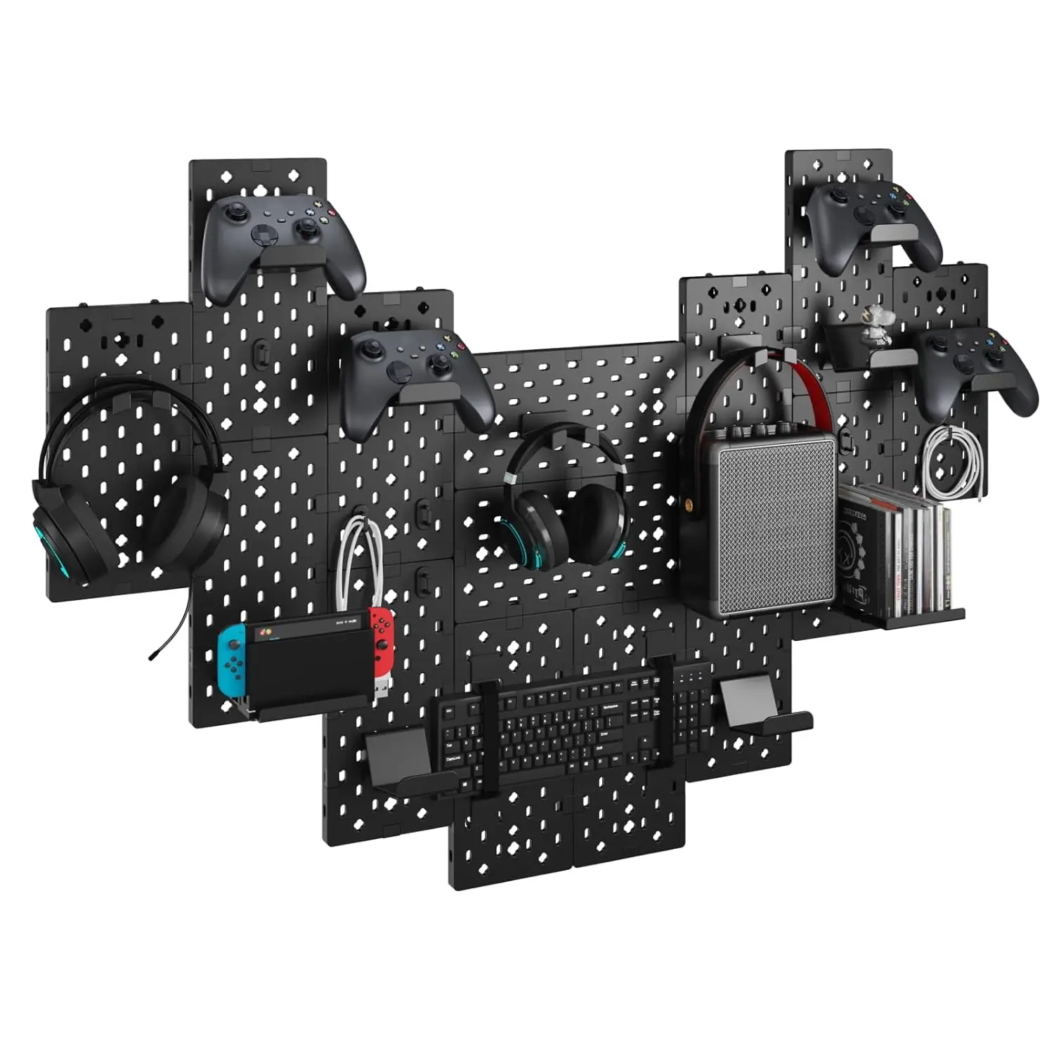 Modular Gaming Pegboard Wall Mount with Controller & Headphone Holder, 14pcs Accessories for Xbox PS5 PS4 Switch Storage $45.89