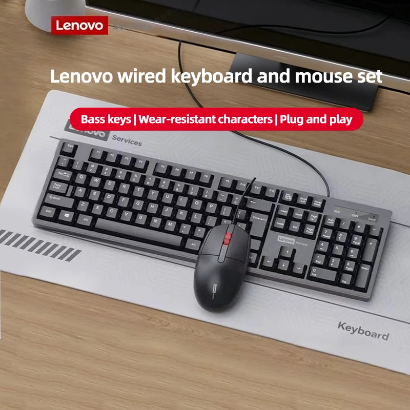 Lenovo Wired Keyboard And Mouse Set Splash-Proof for Home And Business Office Use Compatible with Desktops And Laptops 104 Keys $15.87