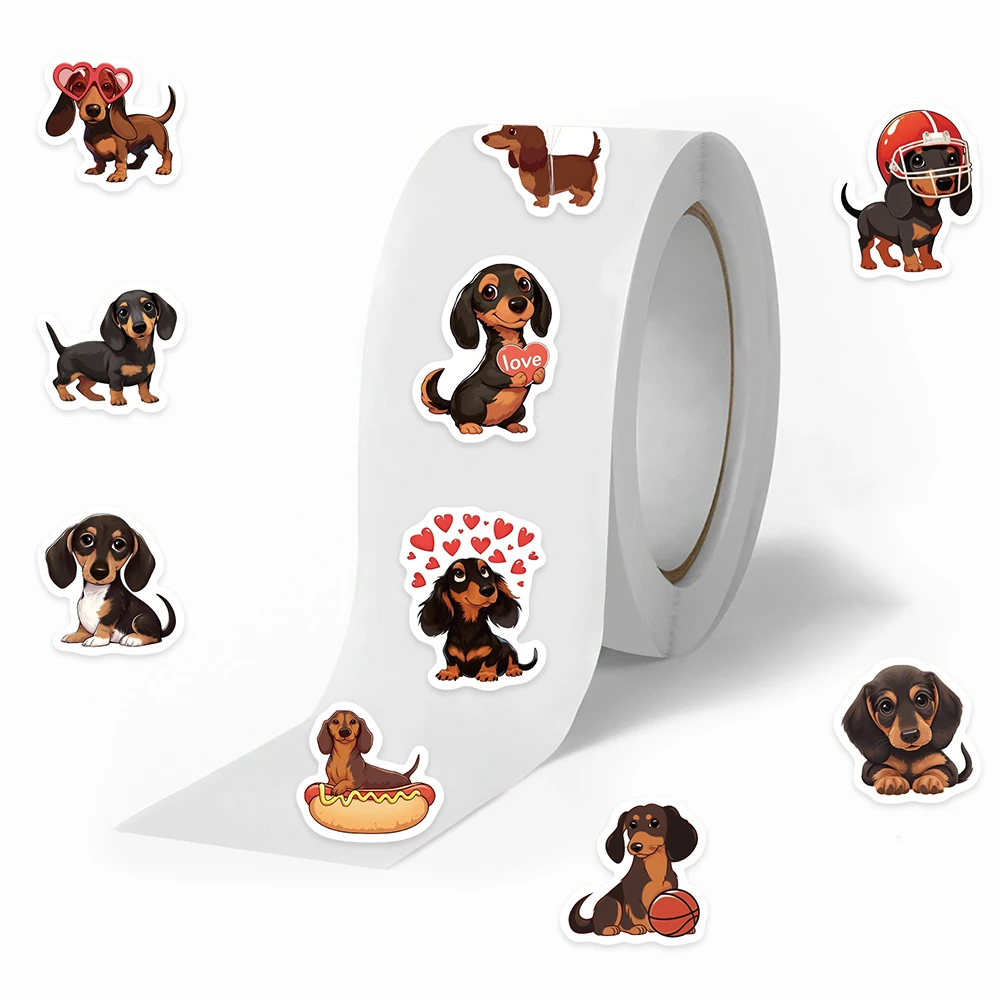 500pcs Cartoon Cute Sausage Dog Roll Stickers Decals For Laptop Scrapbook Skateboard Suitcase DIY Aesthetic Waterproof Stickers $4.12