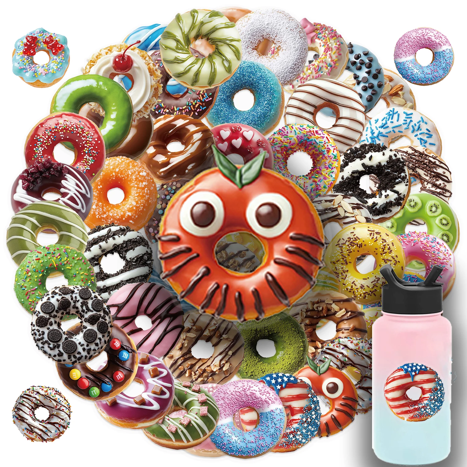 50/100PCS Sweet Donut PET Stickers Exquisite Handheld Materials Phone Cases Laptop Suitcases Water Cups Waterproof PET Sticker $3.19