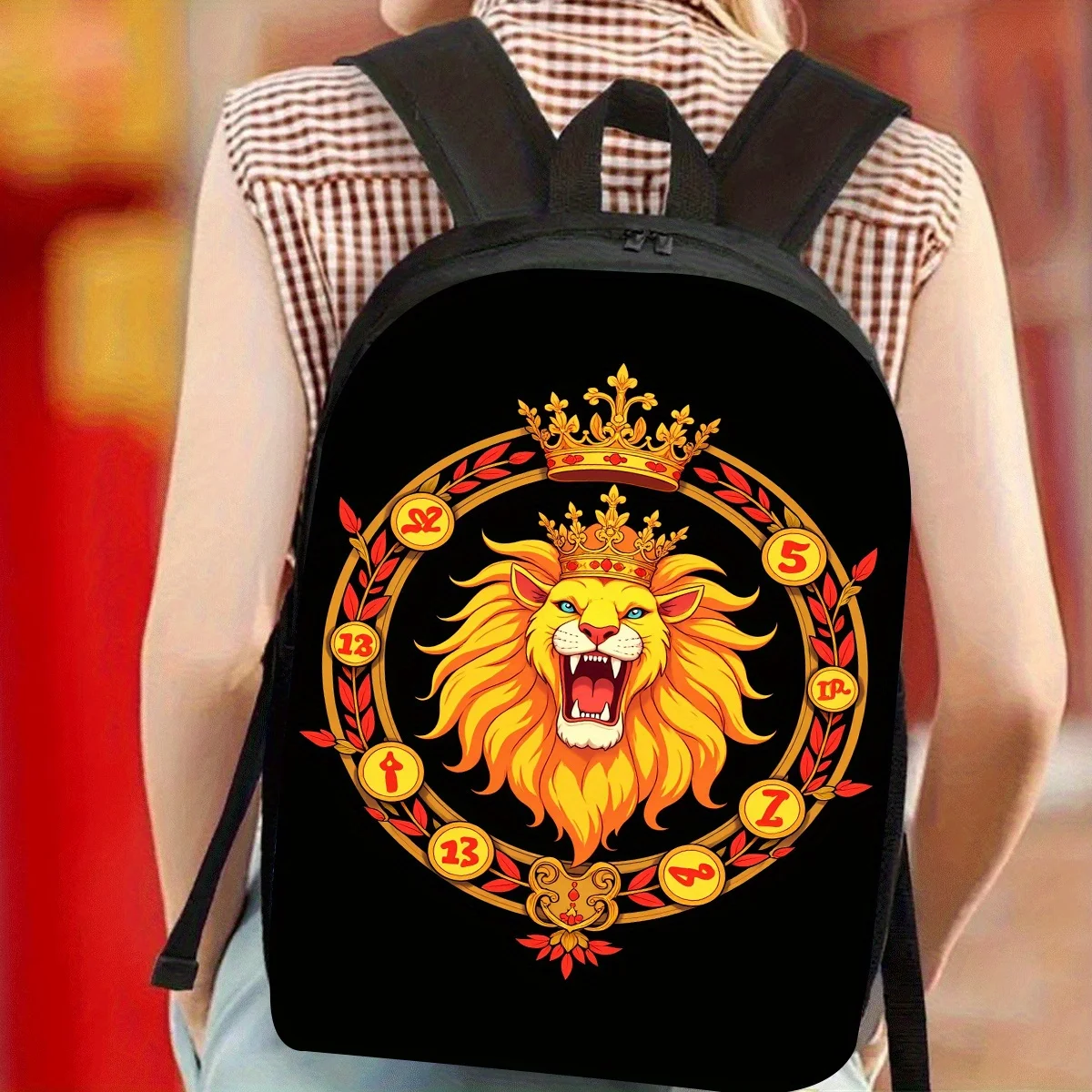JIT 1pc, Lion Backpack, Large Capacity 17 Inch Casual Backpack Laptop Bag with Water Bottle Holder - Lightweight Durable $16.32