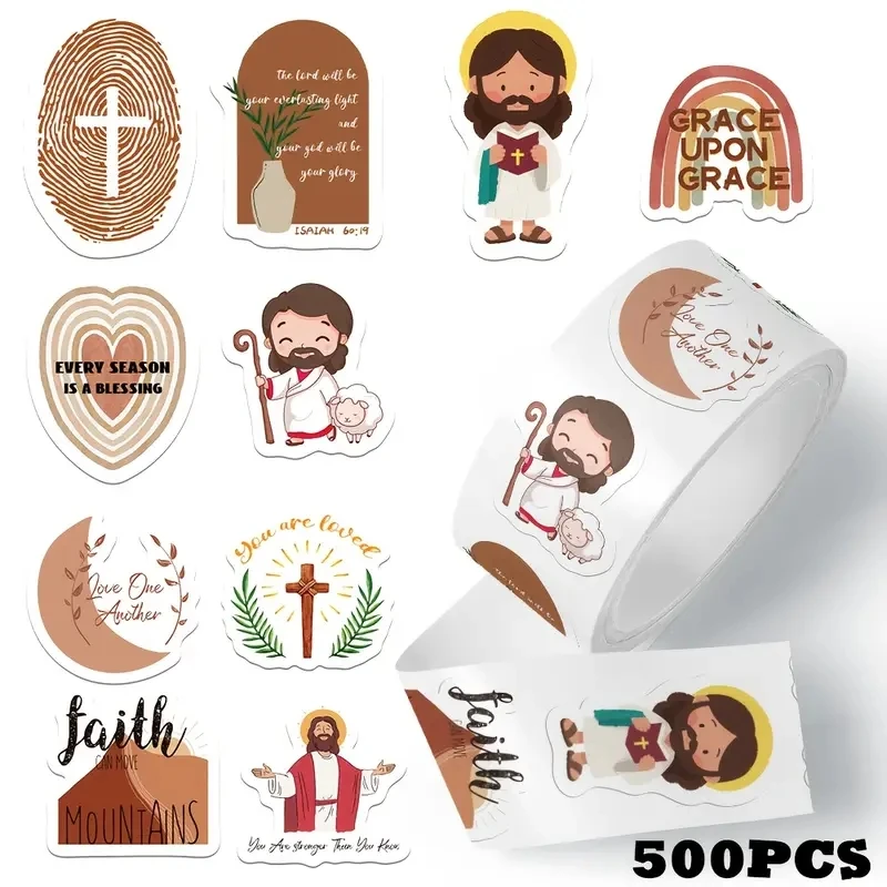 500pcs/roll Jesus Stickers Exquisite Account Materials Phone Cases Laptop Suitcases Water Cups Waterproof Stickers $3.80