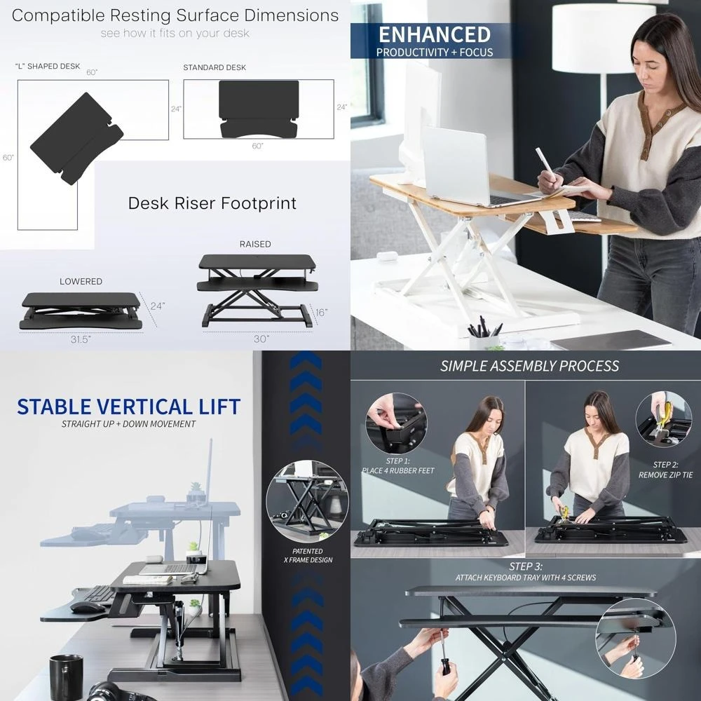 32 inch Bamboo Top Desk Converter, Adjustable Height Dual Monitor Stand with Laptop and Wide Keyboard Tray $164.28