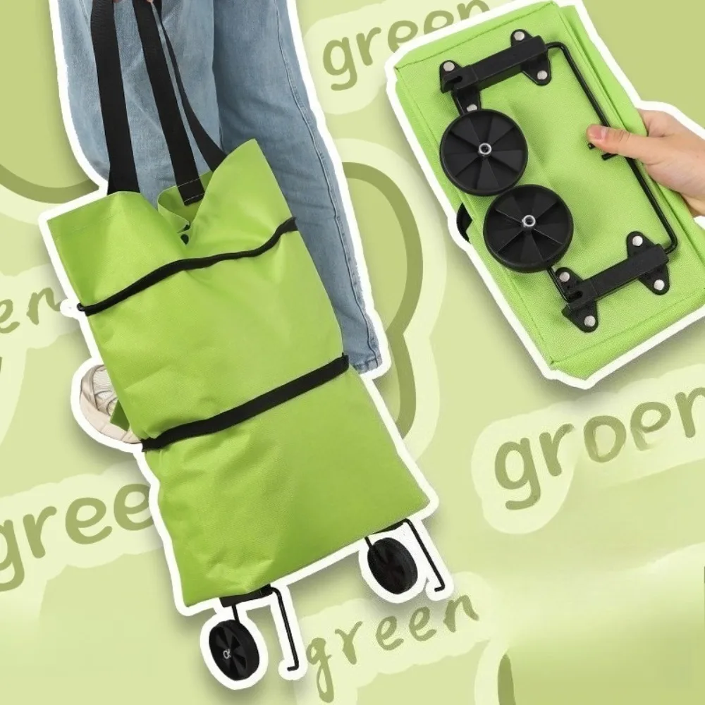 Foldable Shopping Bags with Wheels Portable Roller Tote Grocery Market Cart Caddy Oxford Fabric Reuseable Lightweight Bags Green $10.51