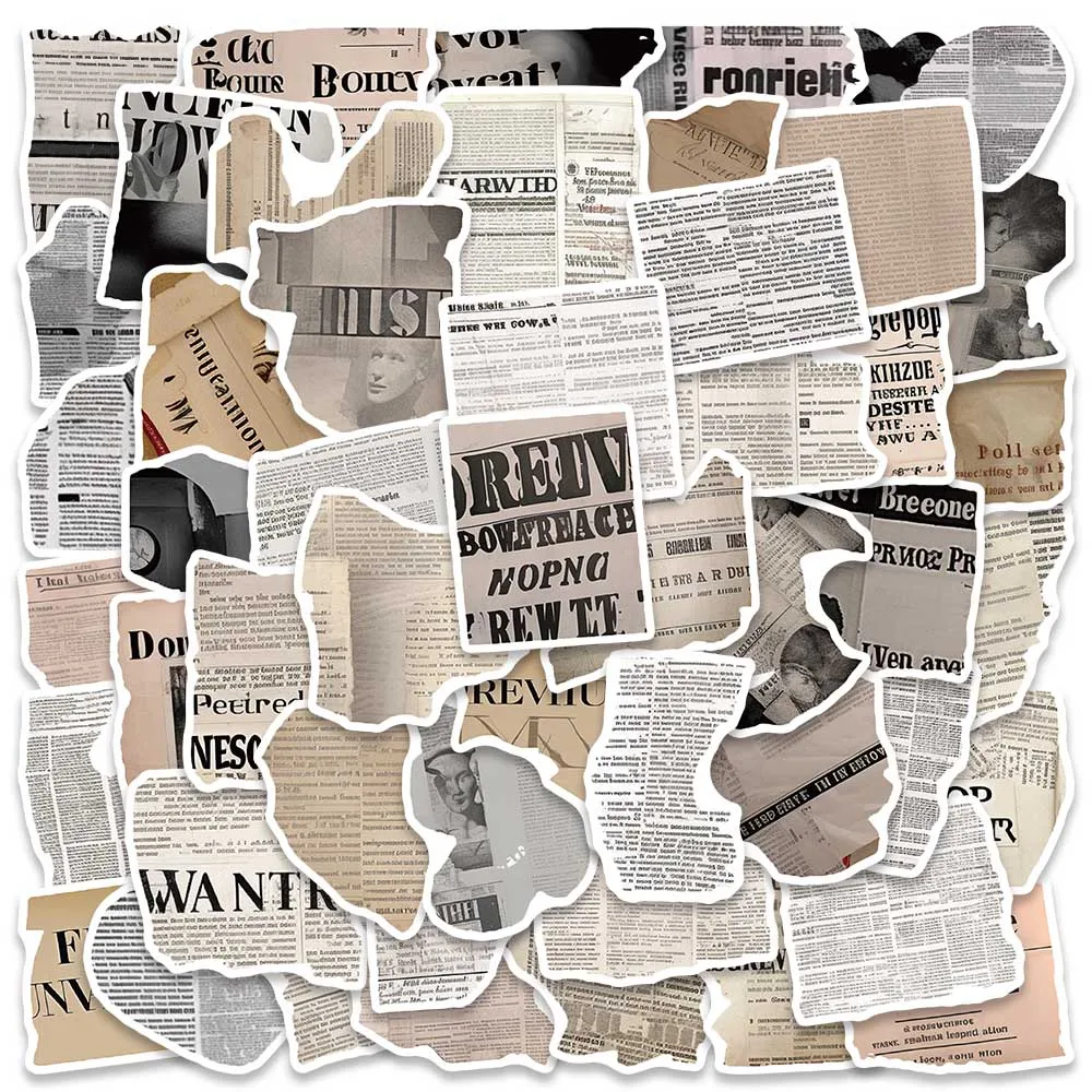 50pcs Retro Fragmented Text Sticker Minimalist Fashion Decal For Laptop Phone Case Diary Magazine Decal Sticker PVC HD Printing $1.90