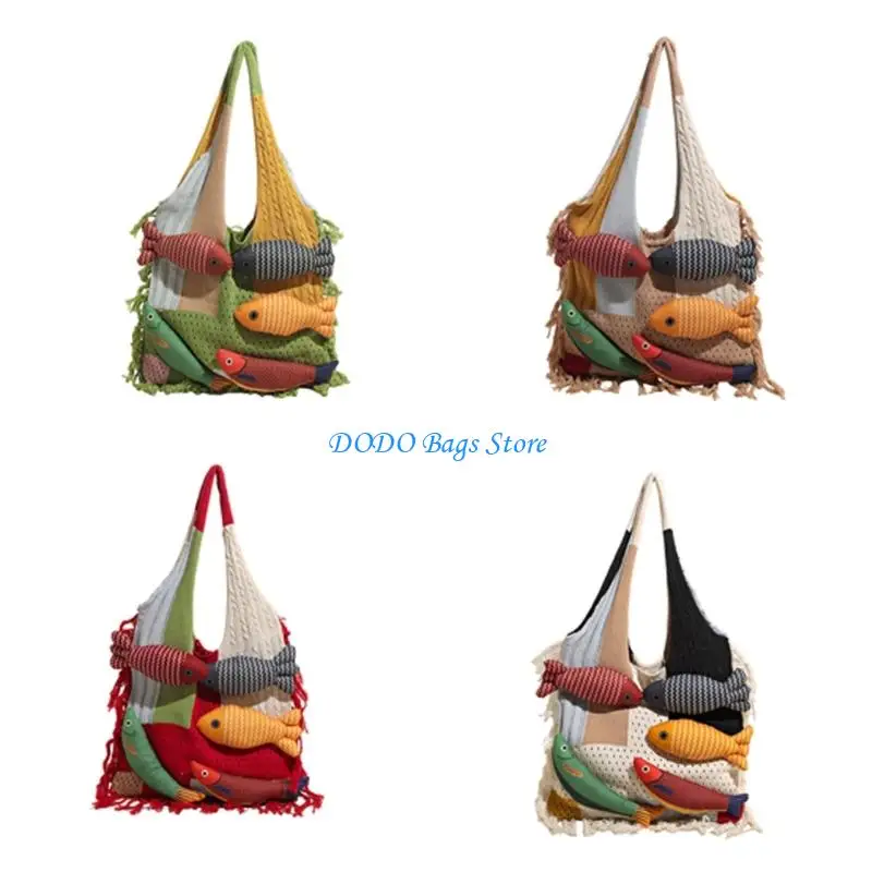Contemporary Marine Life Pattern Knitted Bag Spacious Compartment For Laptop Essential Soft Comfortable Polyester Work Travel $4.40