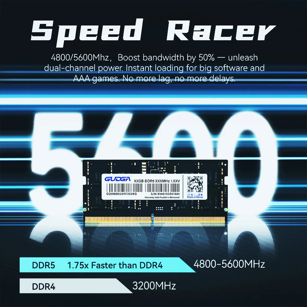 GUDGA DDR5 RAM 8GB 16GB 32GB DDR5 Memory 4800MHz 5600MHz Original SODIMM 1.1V 262Pin CL40 CL46 for Laptop ECC Module $107.53
