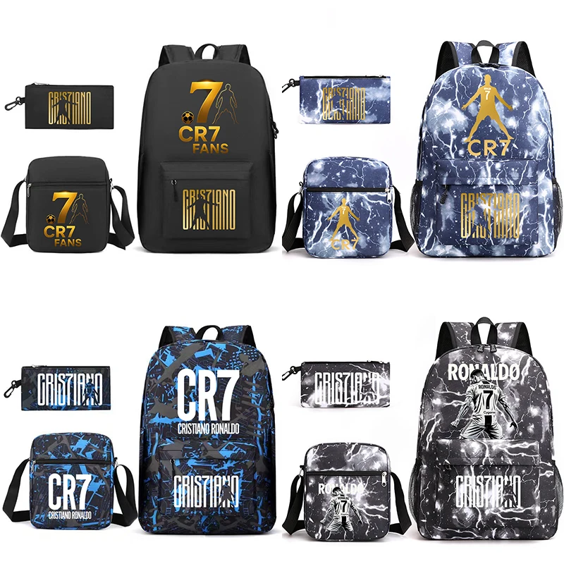 Football Star Ronaldos Backpack Backpack 3pcs Cr7 Women Men Backpack Travel Bag Schoolbag for Teens Girl Boy Laptop Mochila GIFT $1.63