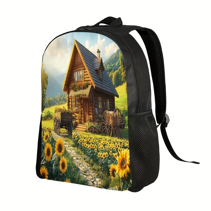 Charming Cottage and Sunflower Backpack - Large Capacity Laptop Bag with 15.6 Inch Partition with Padded Shoulder Straps $17.44
