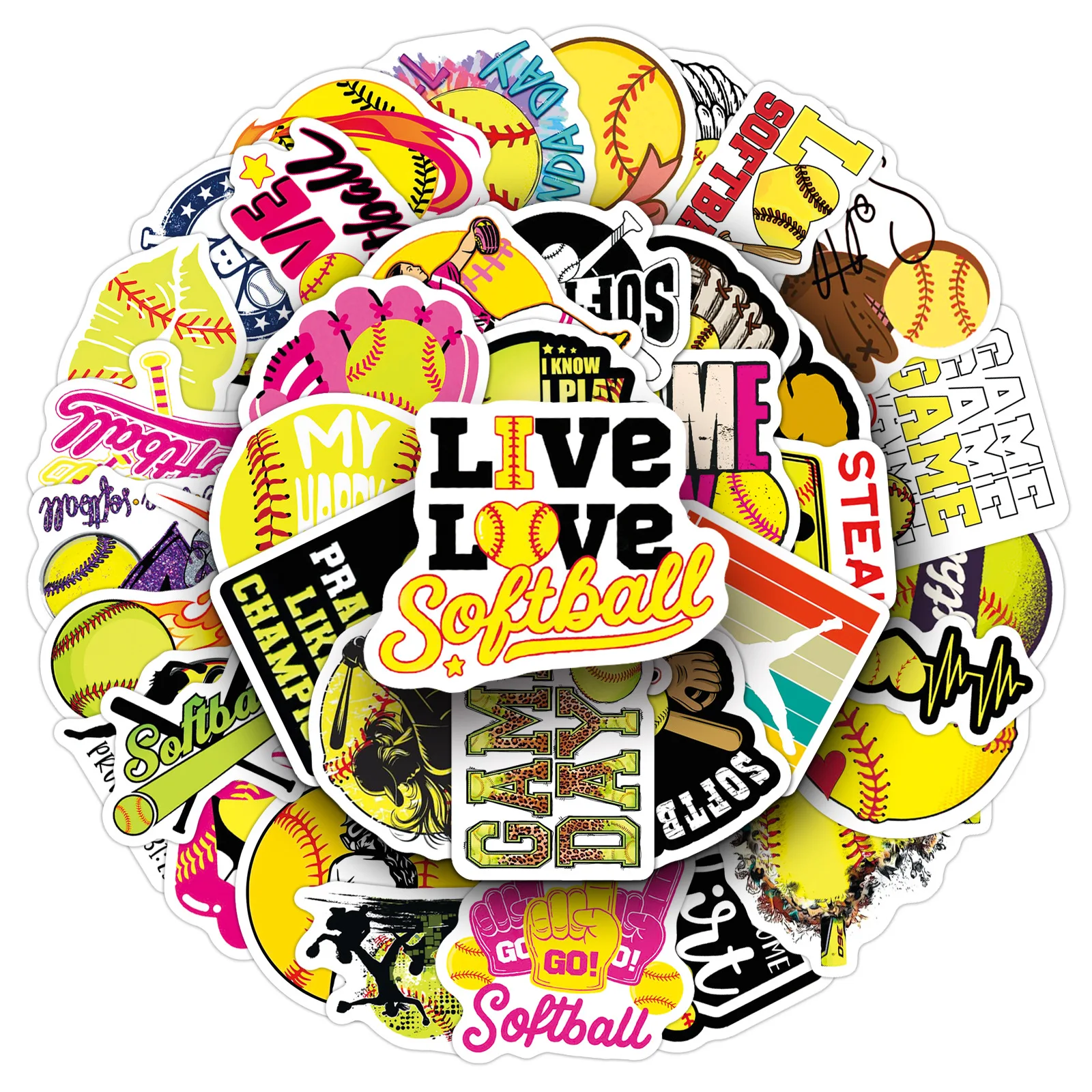 50PCS Softball Stickers Cartoon Style Fun Sports Graffiti Decoration Laptop Luggage Phone Case iPad Waterproof Stickers Kids Toy $4.08