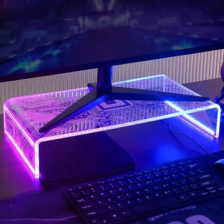 Light Up Monitor Stand Riser Acrylic Computer Stand with PCB Pattern Blue Pink LED Lights for Desktop Laptop Gifts for Boys Gir $94.02
