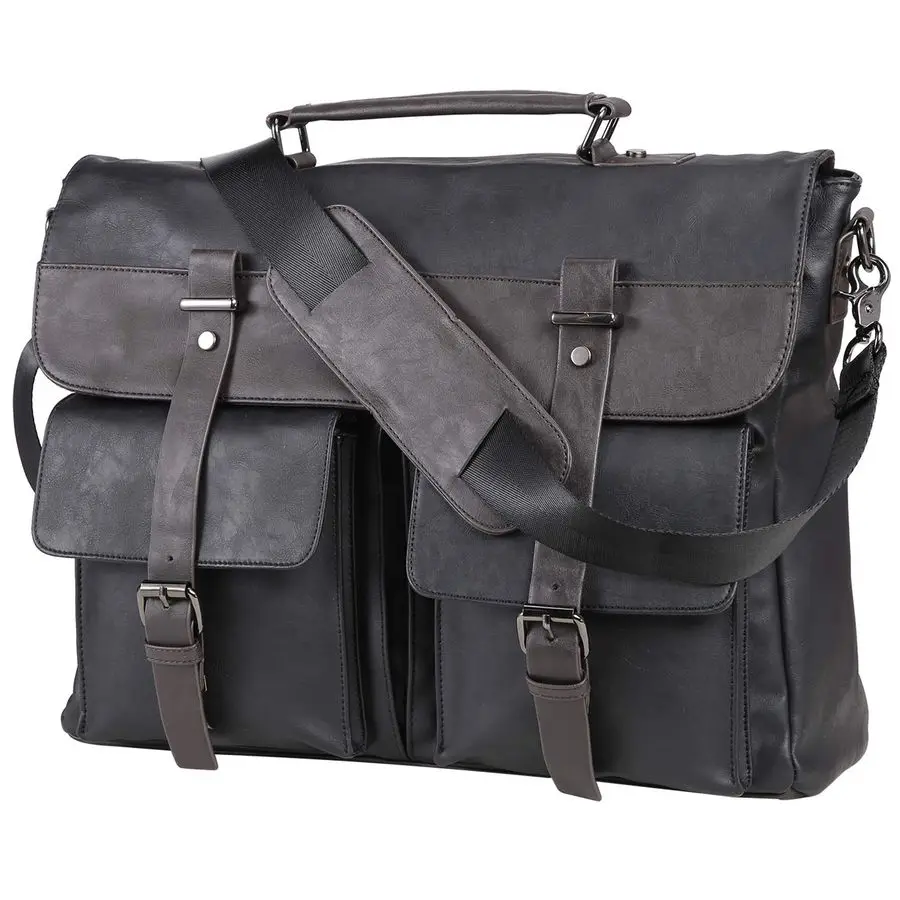 Mens Vintage Black 17.3 Inch Water Resistant PU Leather Laptop Bag, Messenger Bag, Satchel, Briefcase $62.90
