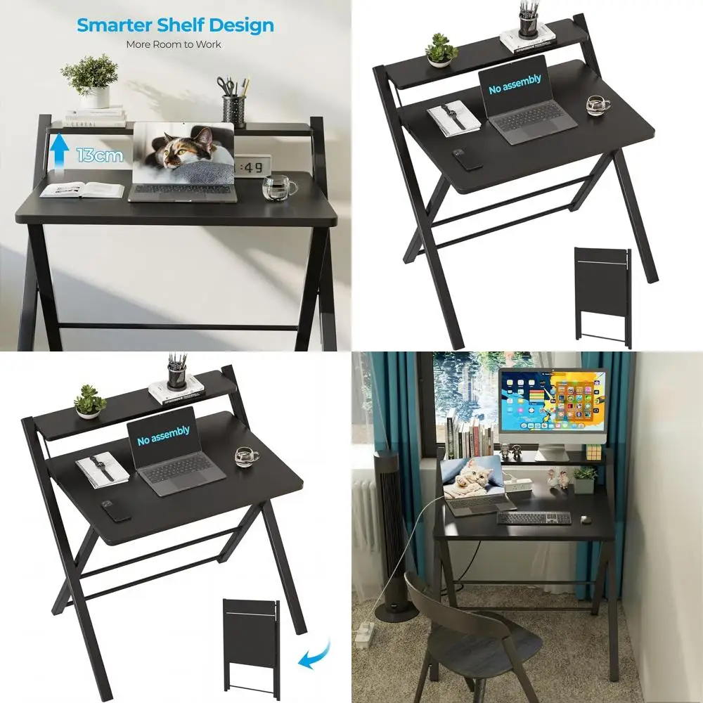 Compact 2-Tier Laptop Desk, Portable Collapsible Desk for Home Office, Dorm, or Apartment, Space-Saving and Sturdy, Black $86.53