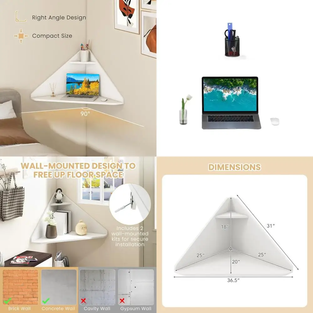 Compact Wall-Mounted Desk with Storage for Laptops, Ideal for Living Spaces, Studies, and Small Offices in White $61.57