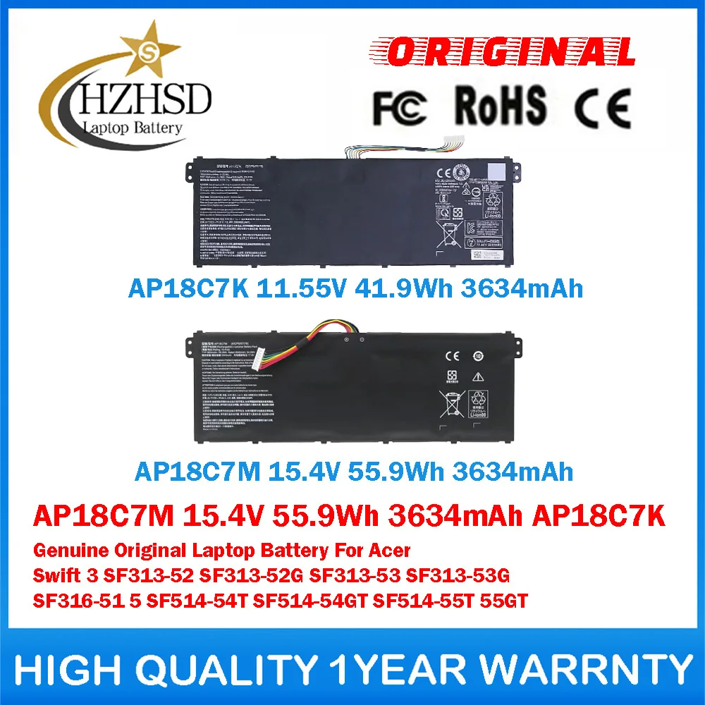 AP18C7M 15.4V 55.9Wh AP18C7K 11.55V 41.9Wh Genuine Original Laptop Battery For Acer Swift3 SF313-52 SF313-52G SF313-53 SF313-53G $27.12