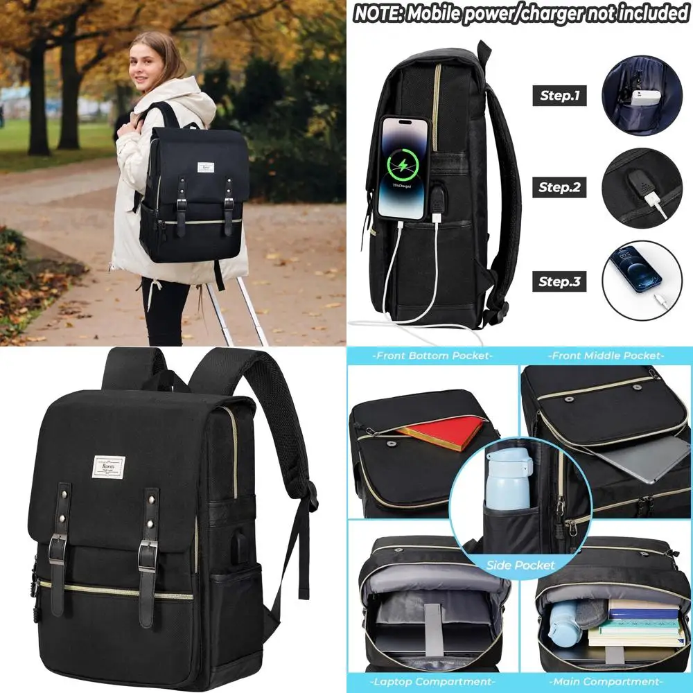 Vintage 15.6 Laptop Daypack with USB Port for Men & Women, All-Black Casual Backpack for College & Work $36.41