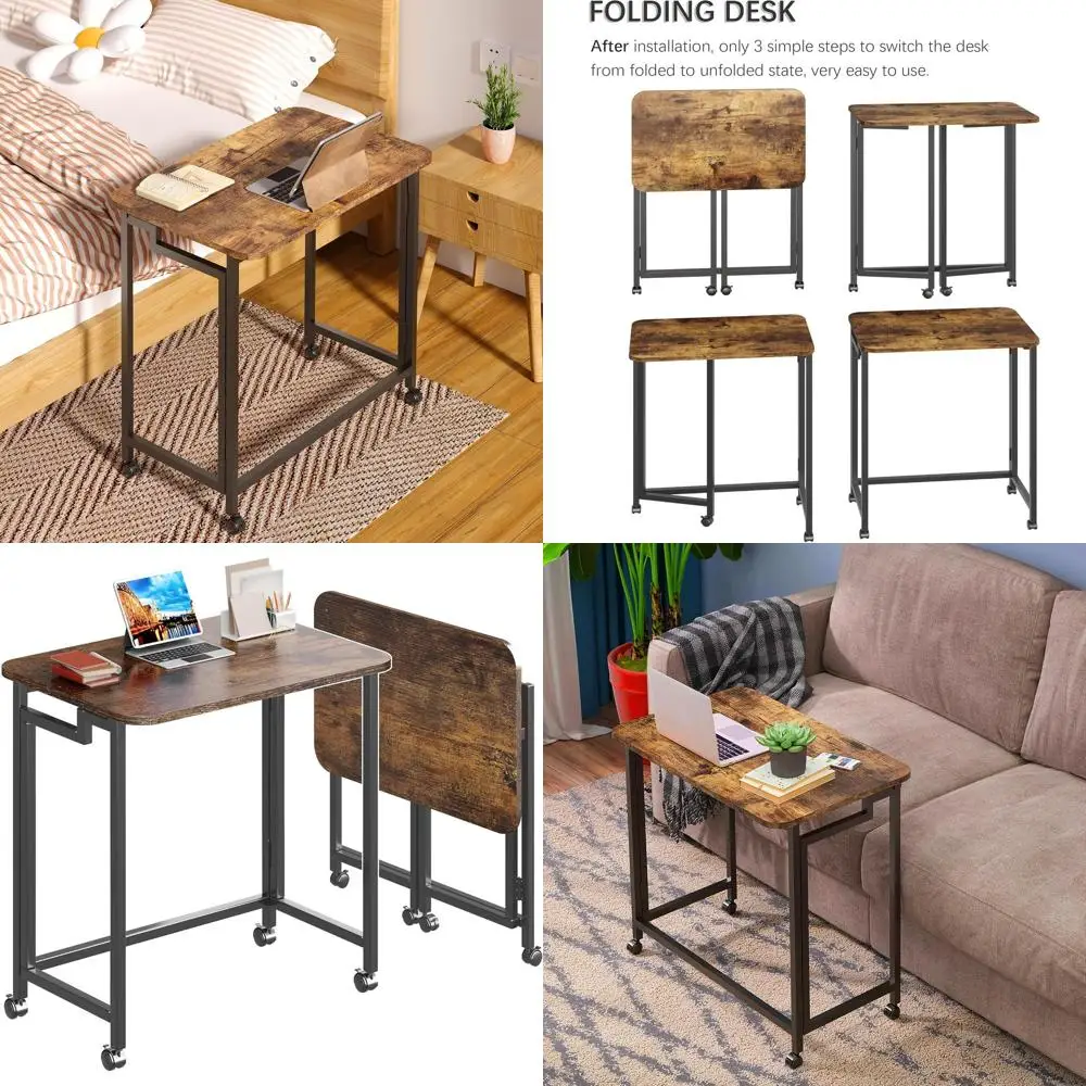 27.5" Folding Rolling Computer Desk with Wheels, Portable Laptop Cart for Small Space Office Bedroom $71.21
