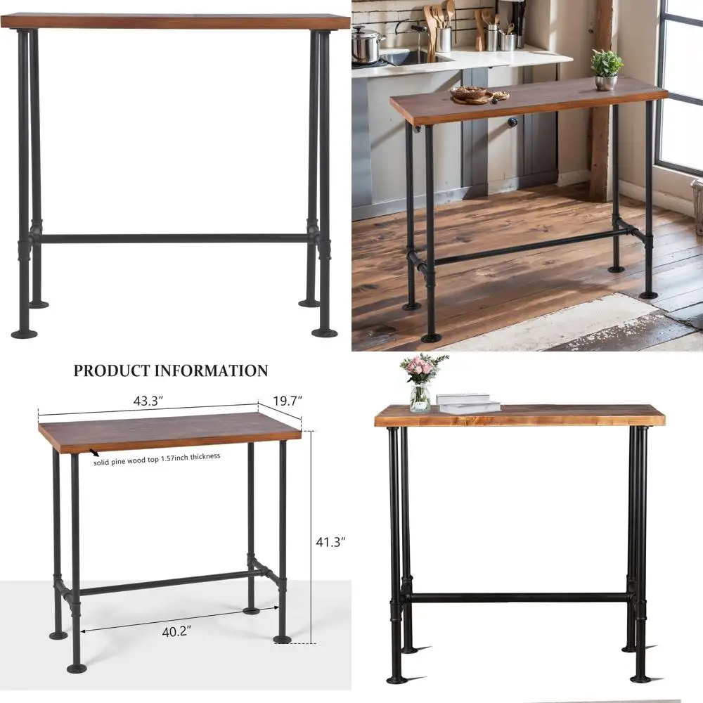Industrial Style Metal and Wood Pipe Dining Table, Casual Pub Desk, Laptop Stand, 43.3x19.7 Brown $102.88