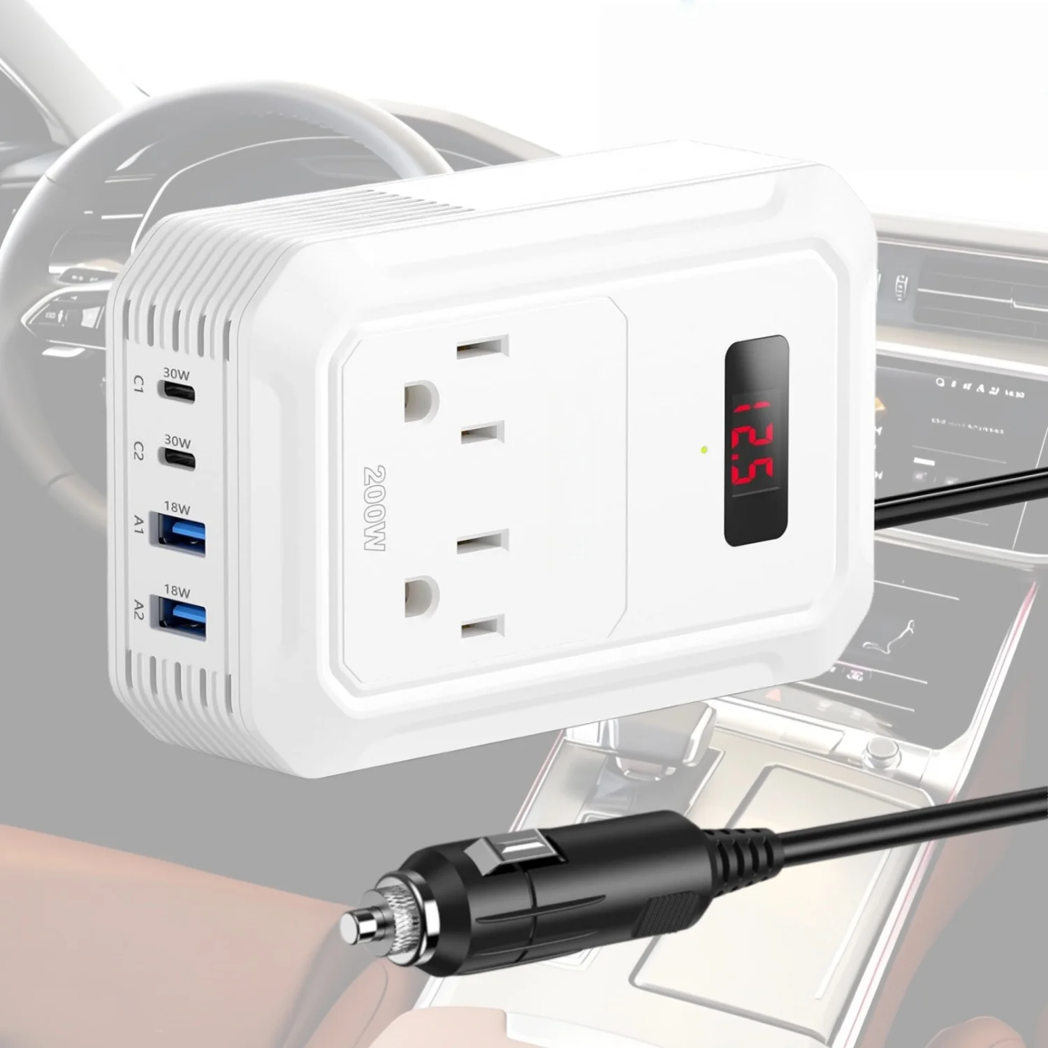 200W High-Power Car Inverter, 96W 4 USB Fast Charge, LCD Display, 12V to 110V Dual AC Outlets for Laptop Game Devices $25.23