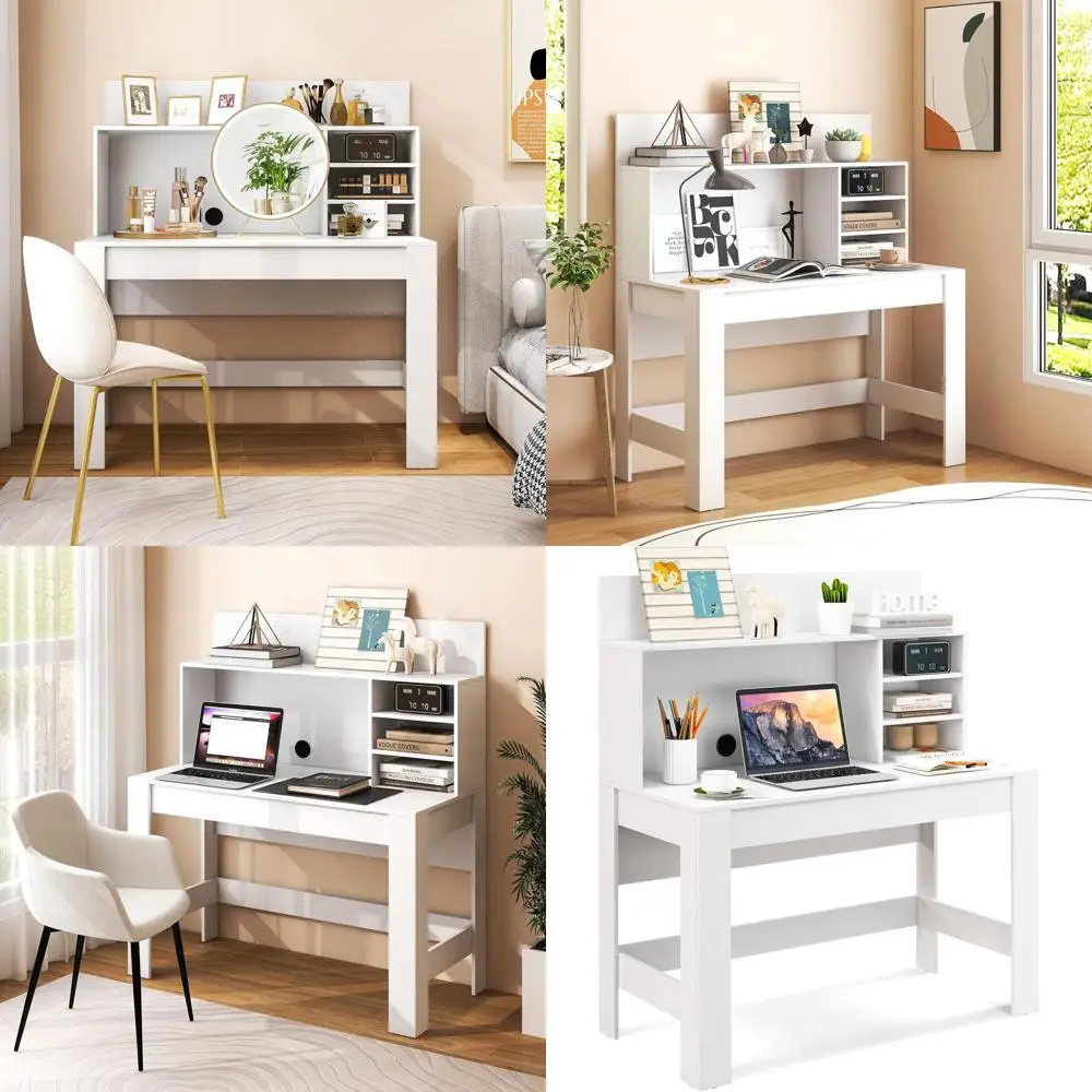 Compact Home Office Desk with Hutch, Laptop/PC Workstation, Anti-Toppling Feature & Cable Management, Ideal for Study or Small S $103.81