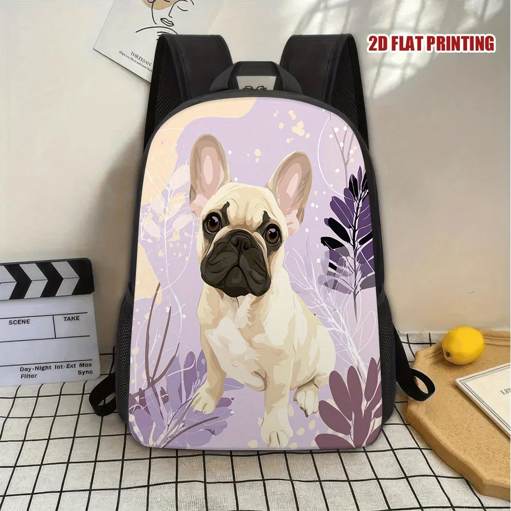 1 Large Capacity Backpack - French Bulldog Puppy Lavender Floral Printed School Bag, Lightweight Laptop Backpack $16.32