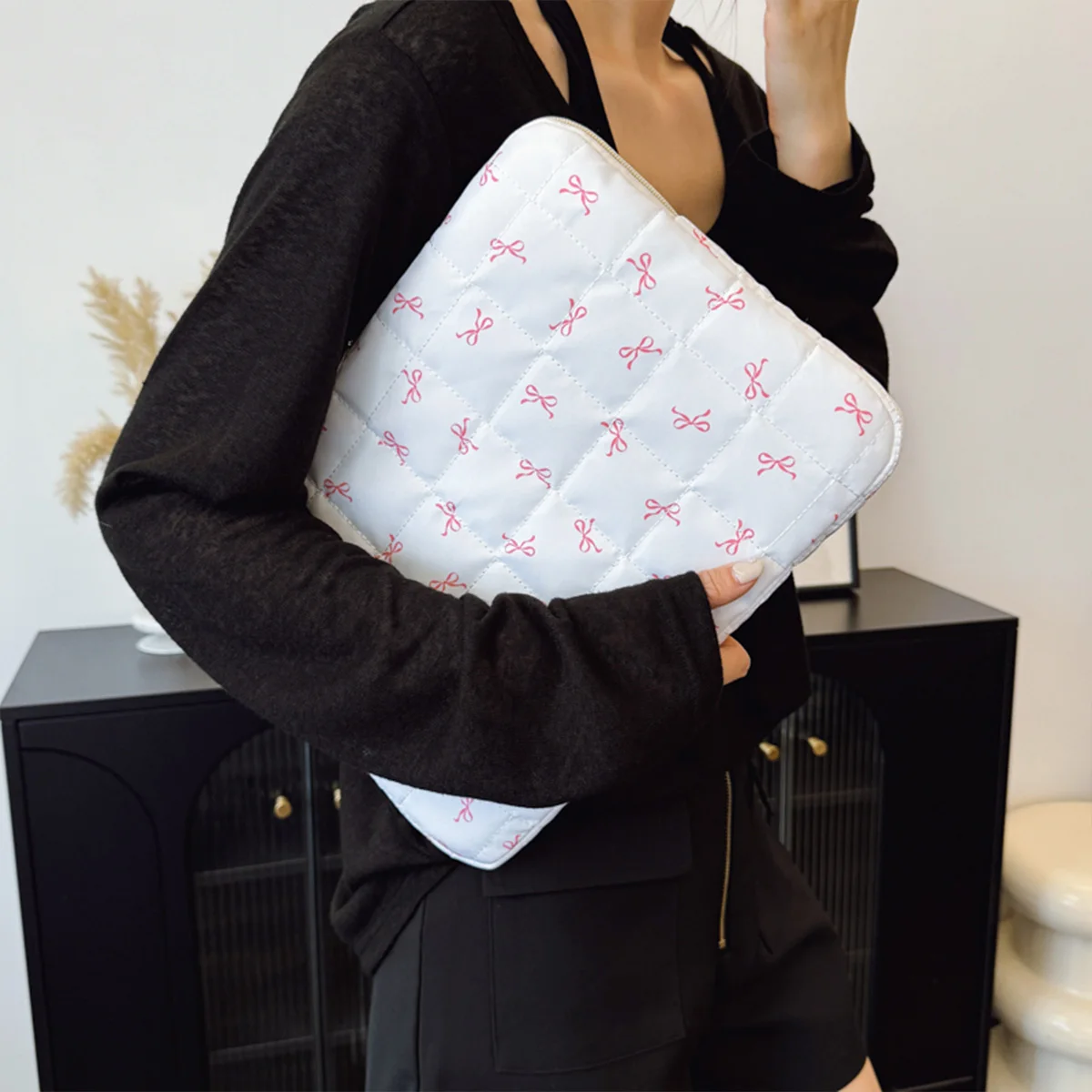 Bow Print Simplicity Leisure Quilted Briefcase Oxford Laptop Sleeve Shockproof Zipper Multi Size for Office Commute $6.09