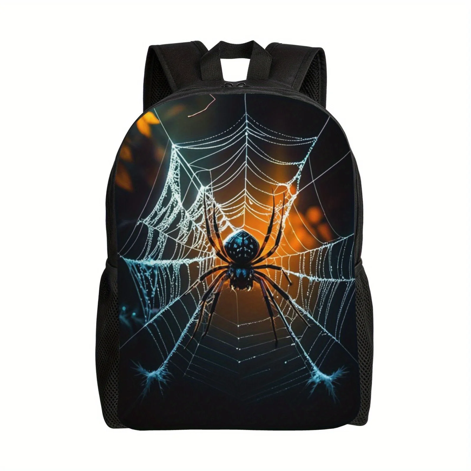 Polyester travel backpack with giant spider print lightweight high-capacity men's and women's laptop bag,multi-function computer $12.18