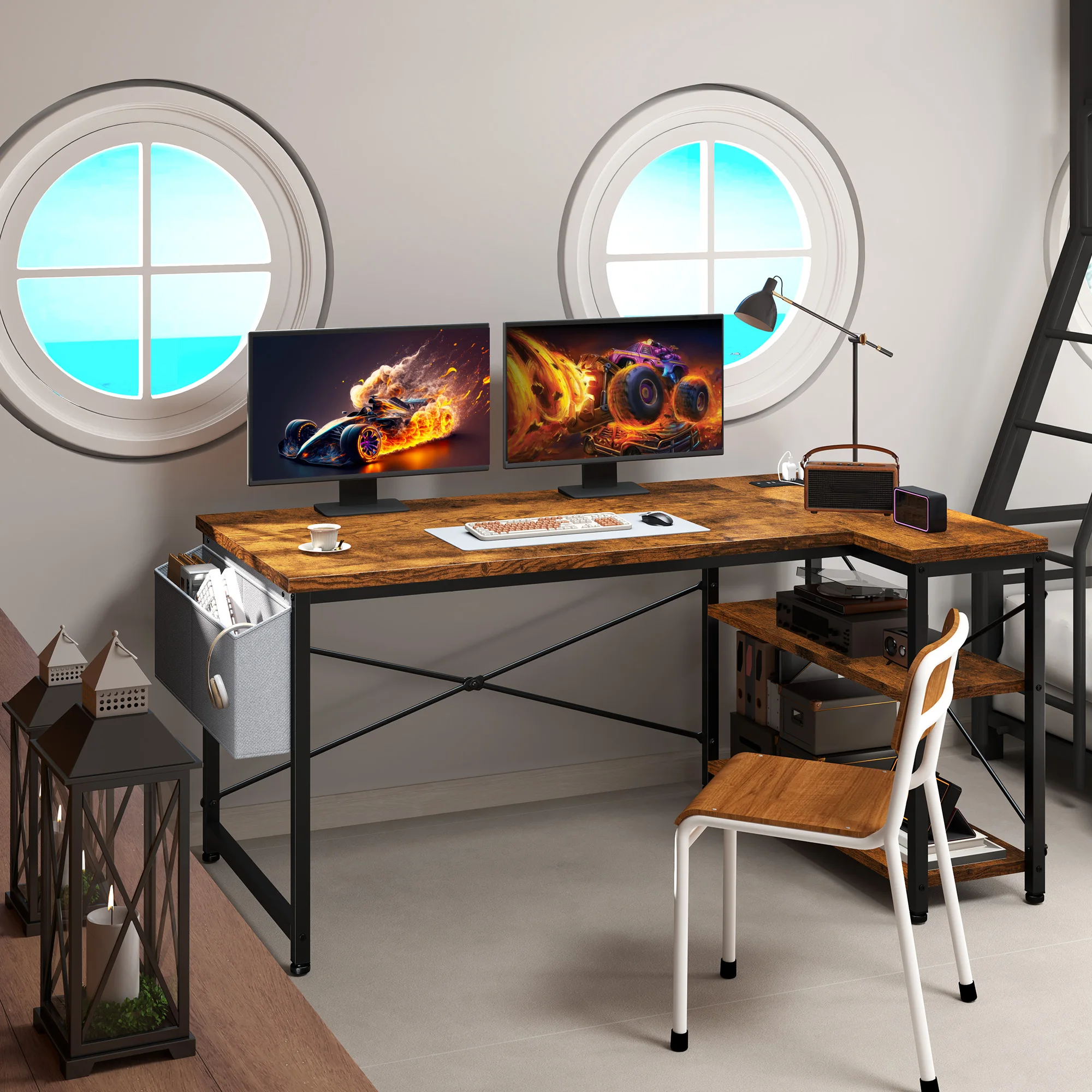 L-Shaped Computer Desk With Power Outlets Home Office Desk with Storage Shelves for Small Rooms $61.32