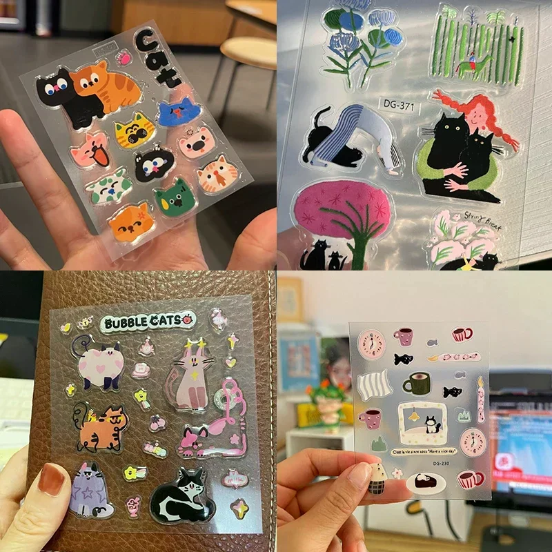 1 Sheet 3D Epoxy Resin Transparent Decals INS Cute Black Cat Cartoon Jelly Sticker Decoration For DIY Phone Cases Laptop Tablet $0.86