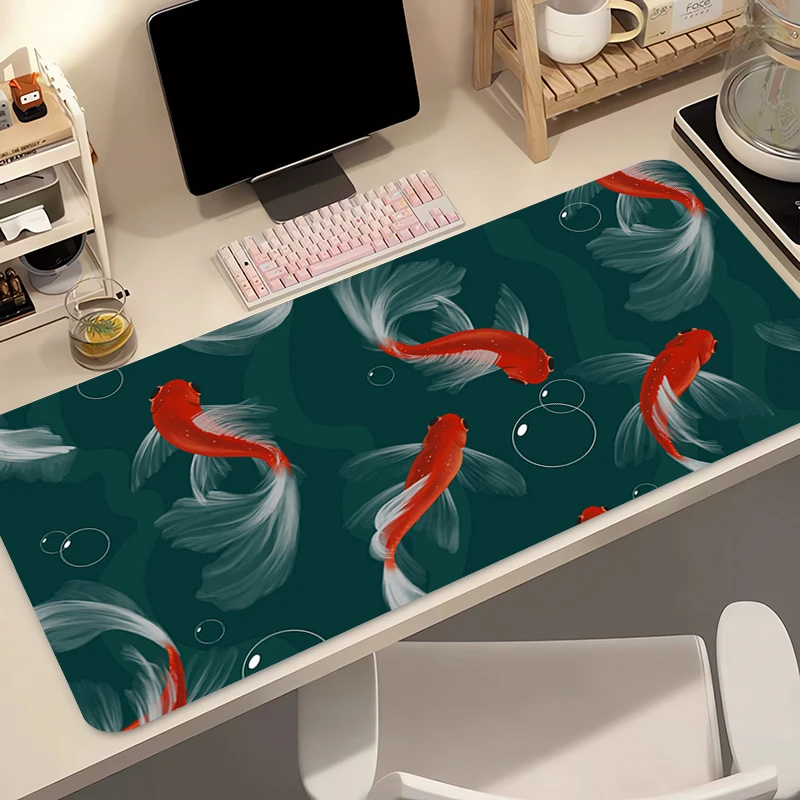 Koi Fish Pattern Mouse Pad Gaming Mousepad Gamer Cabinet Keyboard Pads Office Laptop HD Desk Mats Non-Slip Rubber Home Table Mat $10.76