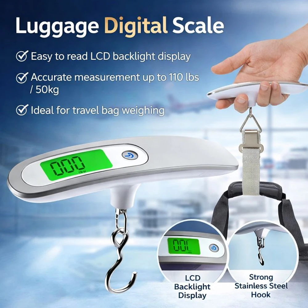 Portable Handheld Digital Luggage Scale With LCD Display-High Precision Travel 50kg Capacity, Auto Lock $6.05