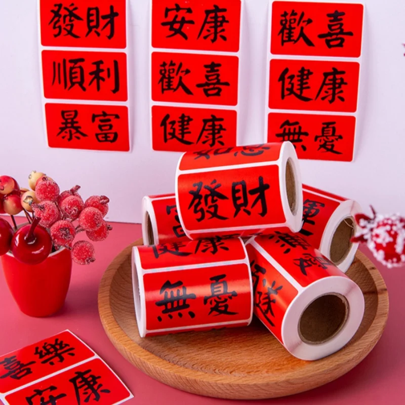 218pcs/roll Chinese Style Blessing Sticker Gift Bag Box Sealing Sticker Prosperity Good Luck for Phone Luggage Skateboard Guitar $3.42