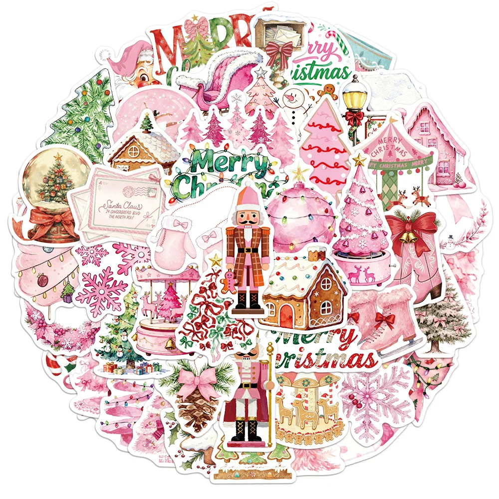 50PCS Pink Christmas 2 Series Gift Graffiti Stickers DIY Luggage Notebook Water Cup Computer Waterproof Stickers $2.59