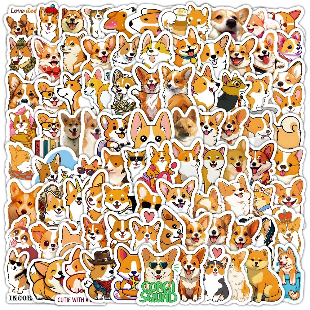100PCS Funny Corgi Dog Stickers dog Decals Kids Laptop Phone Motorcycle Luggage Car Fridge Guitar Bike Waterproof Sticker $2.84