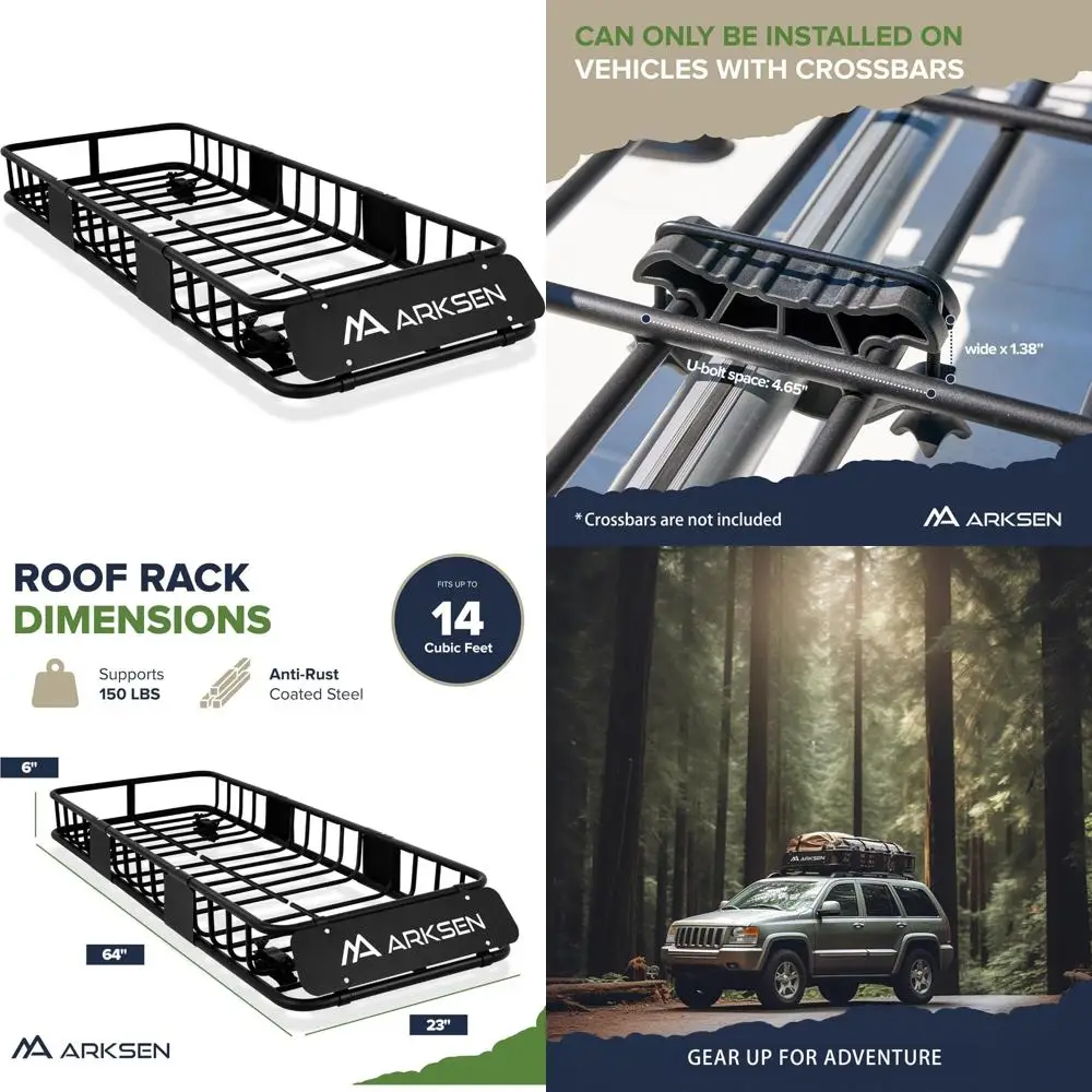 Heavy-Duty Weather-Resistant Top Mount Roof Rack Cargo Carrier Basket for Luggage, Camping Gear, and Outdoor Adventures $120.73