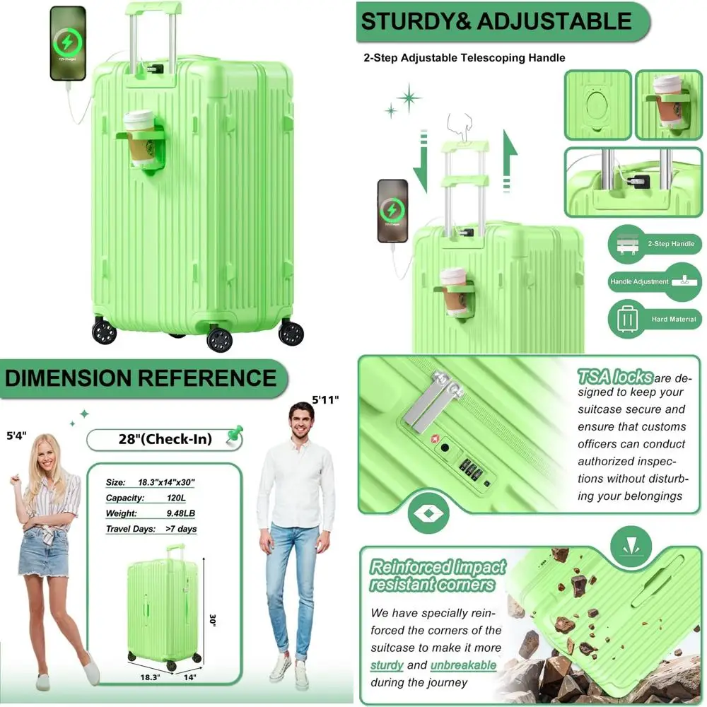 Double Wheel Spinner Suitcases with USB Port, Cup Holder, TSA Lock, PC+ABS Hardshell Luggage, 28 Inch for Travel $169.09