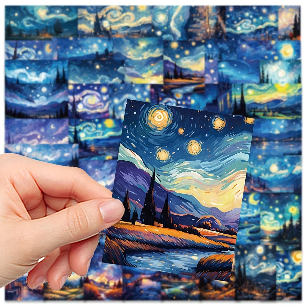 50pcs Van Gogh Starry Night Stickers Oil Painting Pattern Sticker Phone Cases Laptops Luggage Decoration Birthday Party Favors $6.86