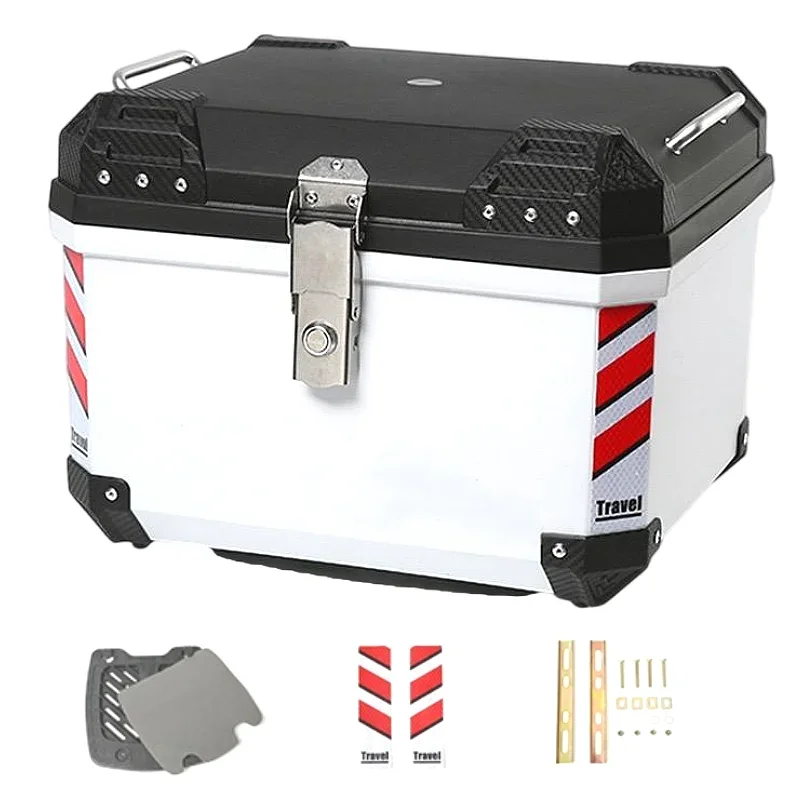 45L Motorcycle Luggage PP Plastic And with Aluminum Handles, Stainless Steel Lock, Bottom Plate, And Reflective Strips $73.44