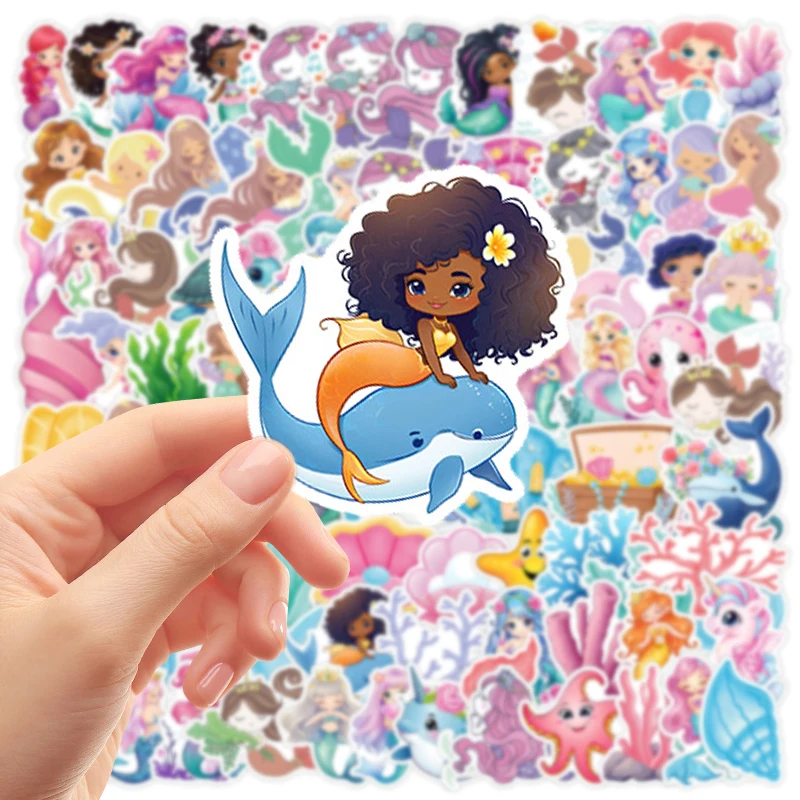 100PCS Mermaid Graffiti Sticker Marine Animal Aesthetics Laptop Luggage Scrapbook Diary Bicycle Helmet Decoration Decal Kids Toy $3.34