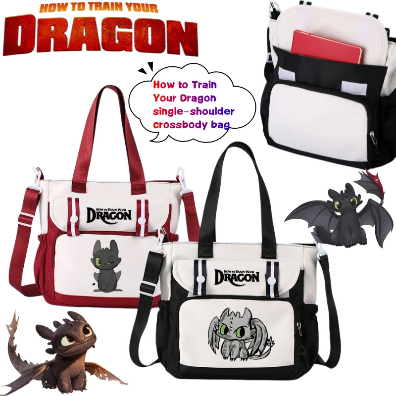How to Train Your Dragon Toothless Light Fury Shoulder Bag Creative Cartoon Print Large Capacity Portable Student Crossbody Bag $11.26